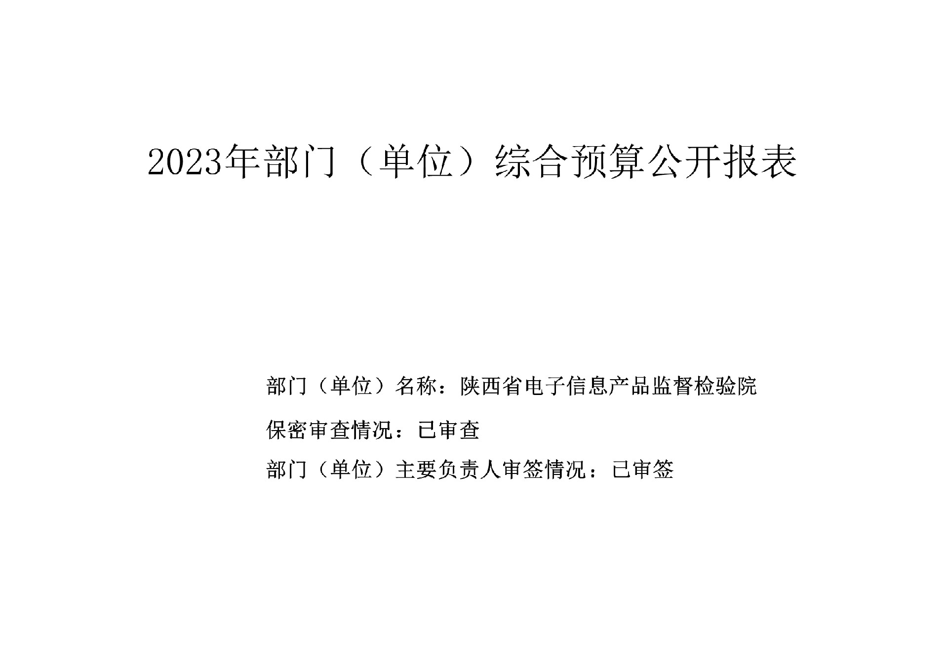2023年陕西省电子信息产品监督检验院预算公开
